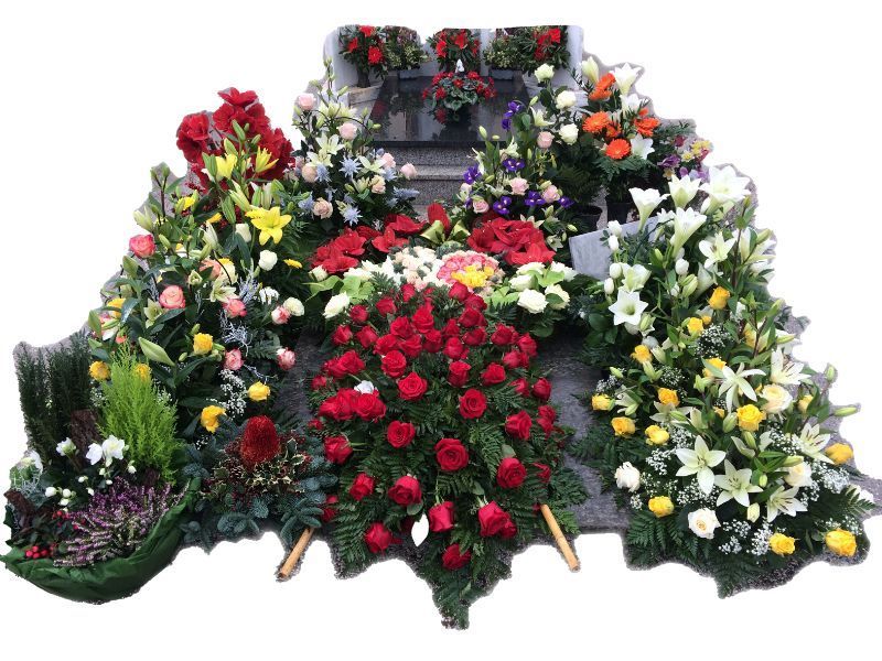 Composizioni floreali per allestimento della cerimonia e omaggi funebri realizzati dalla Bottega del Fiore di San Daniele del Friuli.