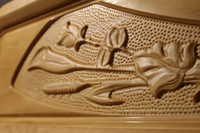 Fornitura di cofani in legno di diverse tipologie, articoli funerari, urne cinerarie.